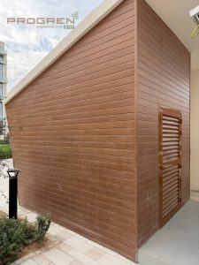 Progren Flooring successfully completed a Red Mahogany exterior cladding project in Masdar City, Abu Dhabi—one of the world’s most forward-thinking green communities. Designed to complement Masdar’s eco-conscious architecture, the rich red mahogany tones bring warmth, depth, and a natural aesthetic to the structure while maintaining a strong sustainability focus.