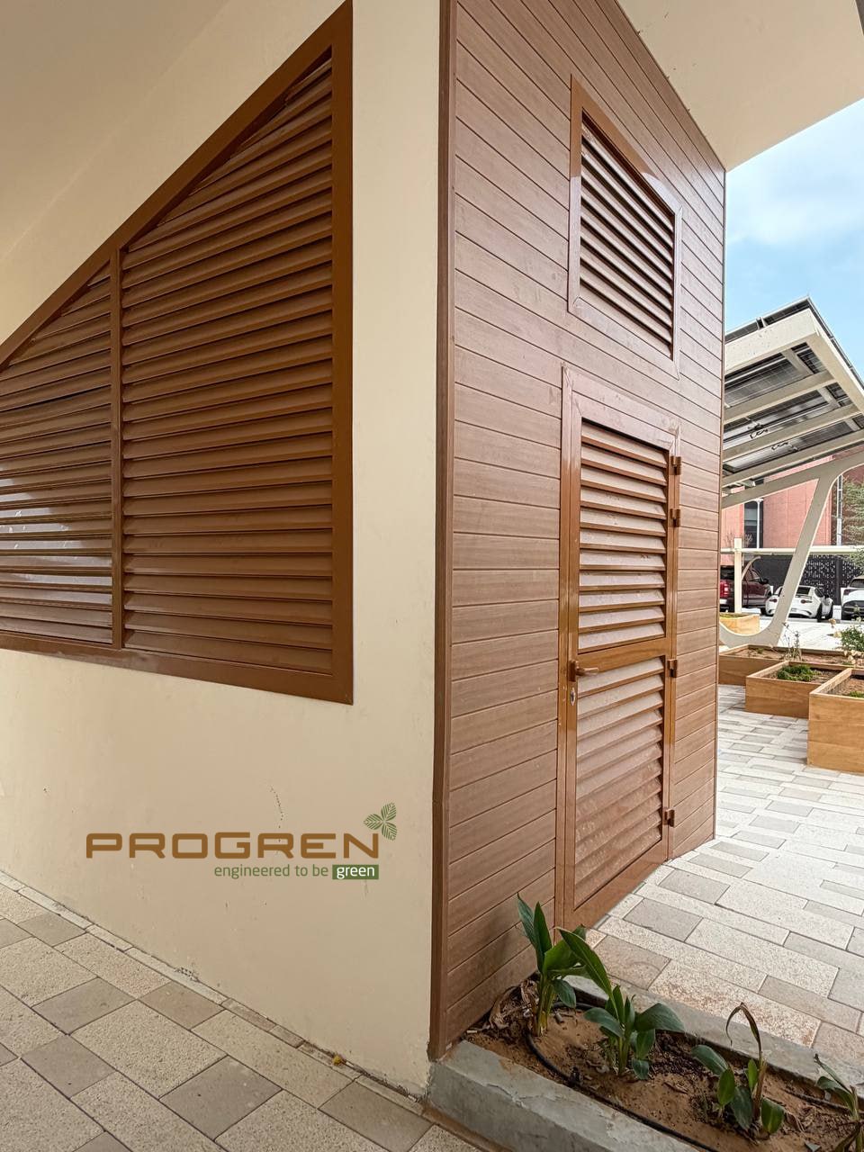Progren Flooring successfully completed a Red Mahogany exterior cladding project in Masdar City, Abu Dhabi—one of the world’s most forward-thinking green communities. Designed to complement Masdar’s eco-conscious architecture, the rich red mahogany tones bring warmth, depth, and a natural aesthetic to the structure while maintaining a strong sustainability focus.